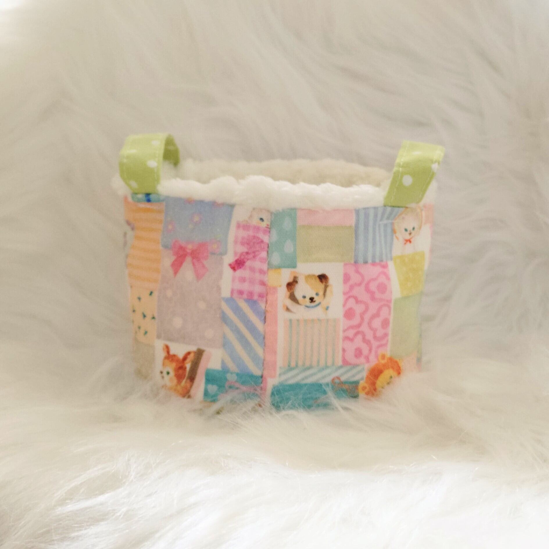 ◯ユキエモンさんの"パズル"柄生地を使用しています。