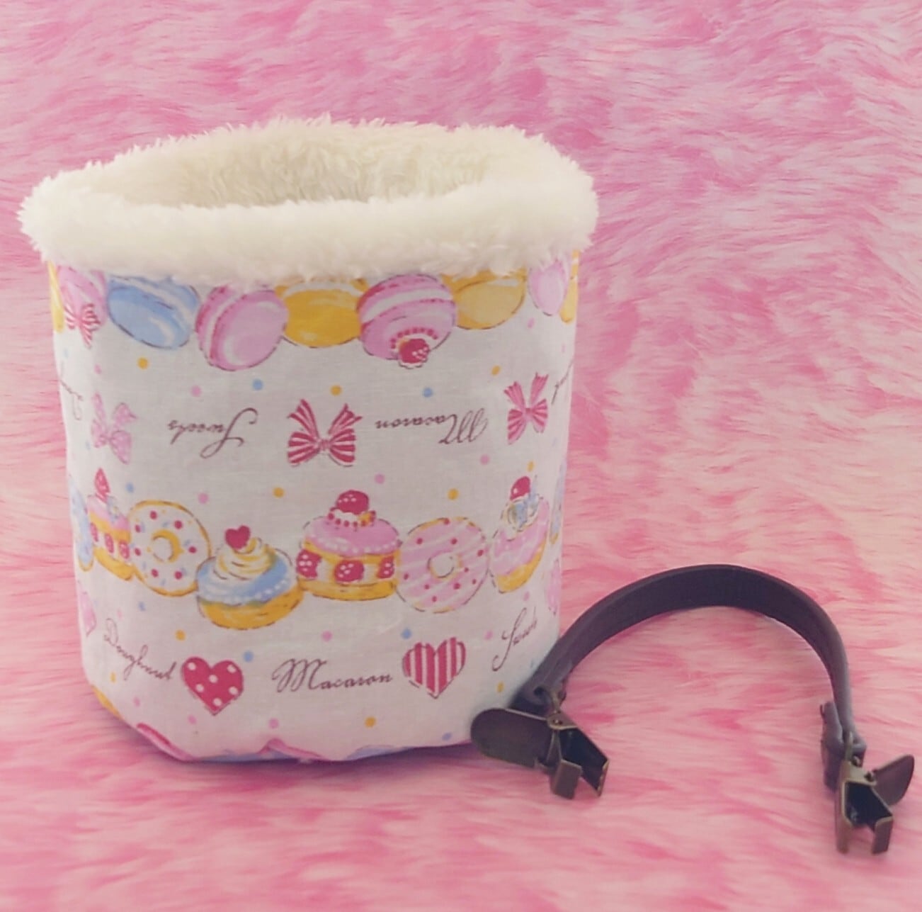 モモンガがすっぽり入れるバケツ型ポーチです。