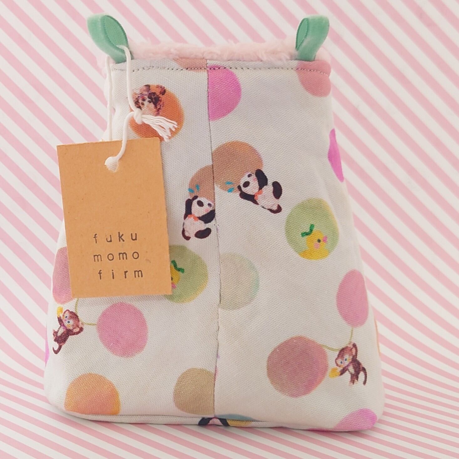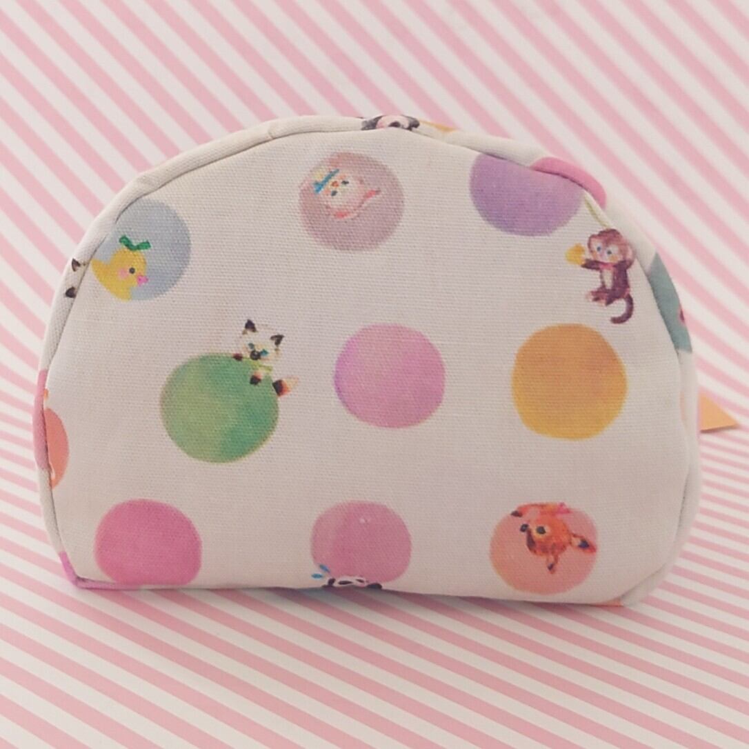 ポーチと同じ生地で作成した缶バッジをプレゼント致します。